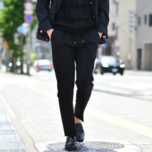 ウール調のストレッチが効いた素材「テクノクレープ」は