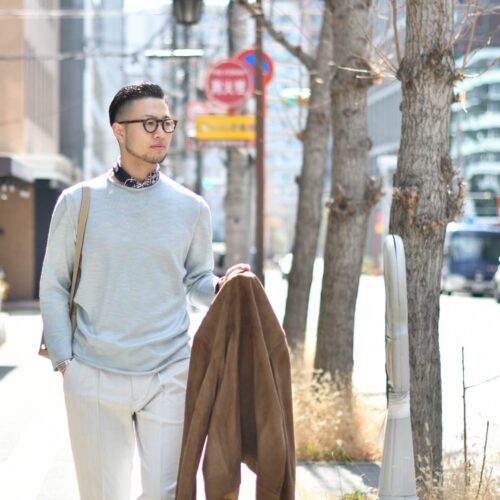 giabsarchivio【ジャブスアルキヴィオ】Cinq essentiel別注 NEW MASACCIO "BLEU" A3719 40 ペンシルストライプジャージー ライトグレー