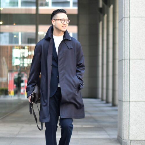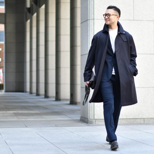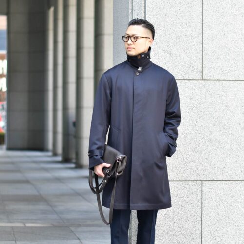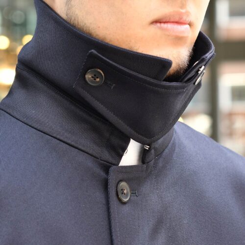 目の詰まったキャバルリーツイルを使用した生地が特徴のステンカラーコートです。