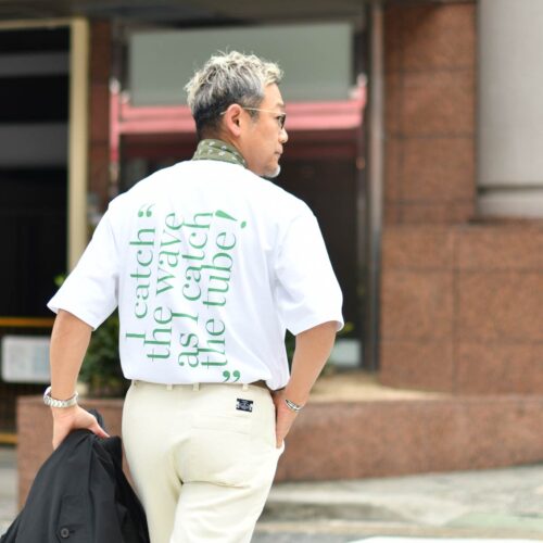 このシルエットなら、インナーにもデザインの効いたオーバーサイズなTシャツも楽々OKですし、