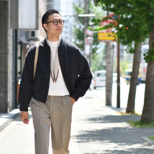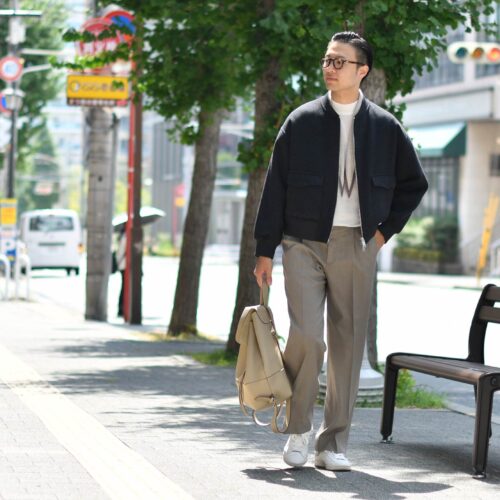 ARMAのブルゾンと合わせてコンテンポラリーな雰囲気を強調し、