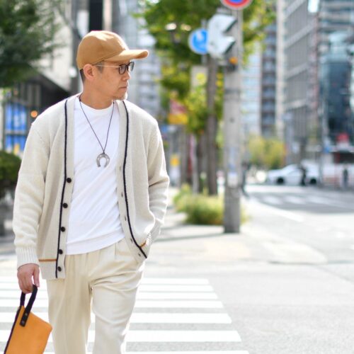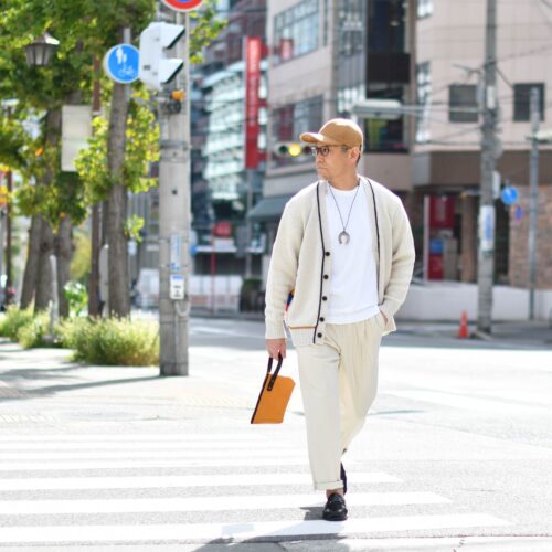 Cellar Door【セラードアー】のオフホワイトのパンツをコーディネートすれば