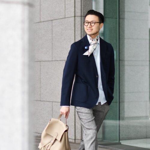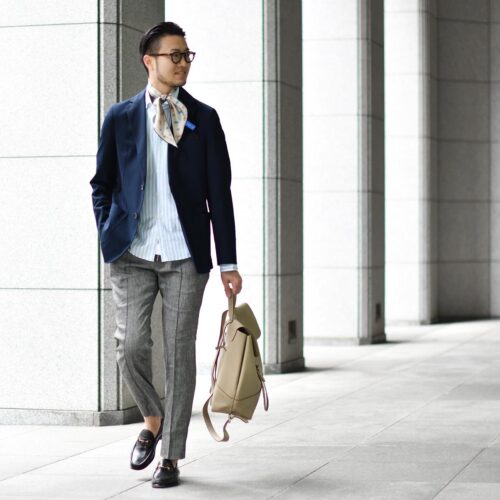 本日ご紹介致しますのは定番のジャケパンスタイル。