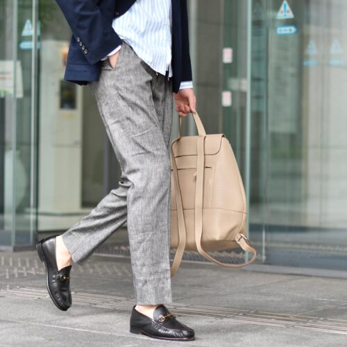 また、パンツも表情豊かなリネン混素材をチョイス。
