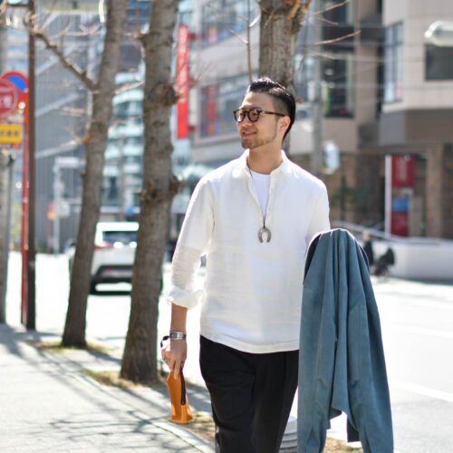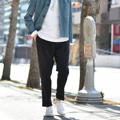 ダークグレーのパンツでコーディネートを引き締めてみました。