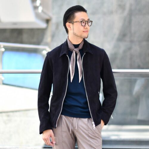 CINQUANTA【チンクアンタ】レザーブルゾン H503 6 2011 6071 PRUSSIA ゴートスエード ネイビー