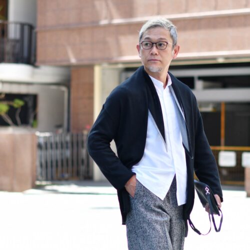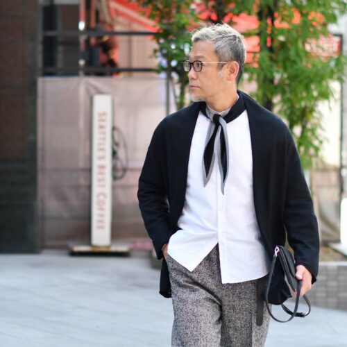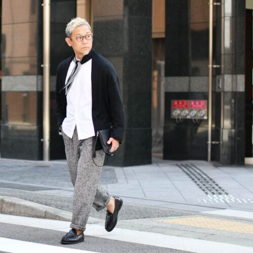 本日の様に、トップスは春の延長で軽やかにしつつも、パンツに秋冬素材を取り入れることで