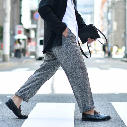 秋冬の季節感たっぷりのツイードヘリンボーンですが、見た目に反して非常にしなやかで