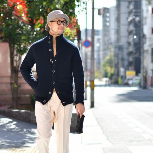 アウターブランドのHERNO流の解釈でニットアイテムから