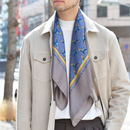 Artumes & Co【アルテュメス アンド コー】スカーフ ダック柄 シルク ブルー グレー