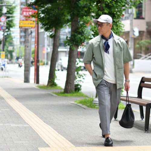 ミリタリーシャツを彷彿させるオリーブカラーは、