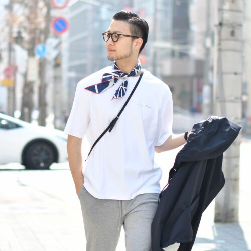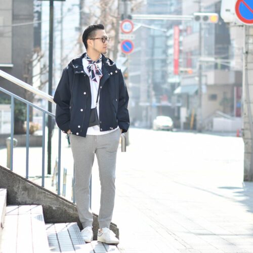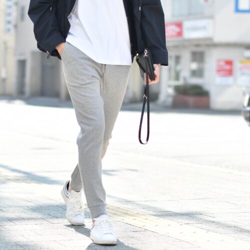 サラッと出かけられるthree dots【スリードッツ】のスウェットパンツをあわせて
