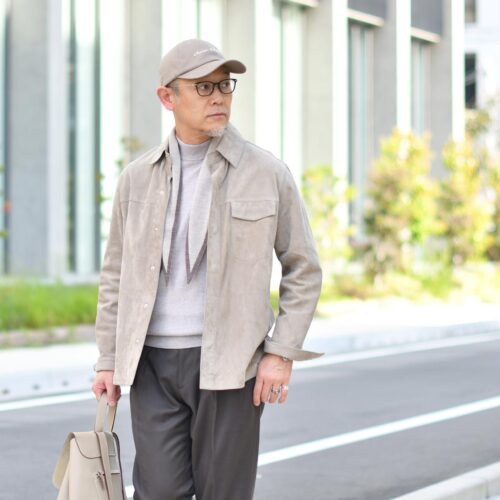 レザーシャツと言う名の通り、ラムスエードを使用した完全なるシャツ仕立ての一着は、