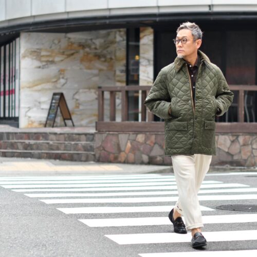 本日はそんなBarbourらしいグリーンを基調としたコーディネートをご紹介です。