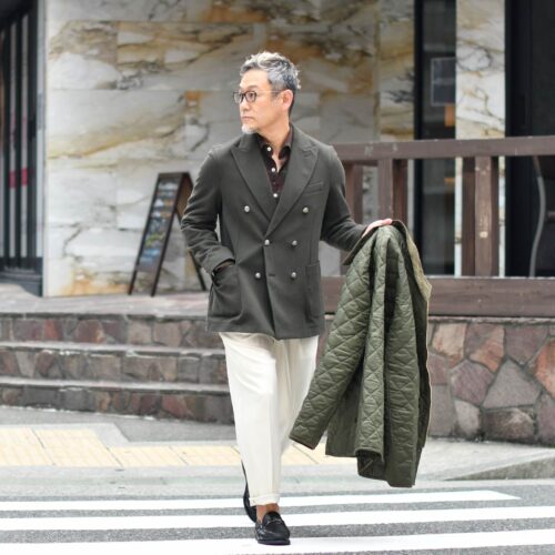 インナーには、Giannetto【ジャンネット】のブラウングリーンチェックを合わせて