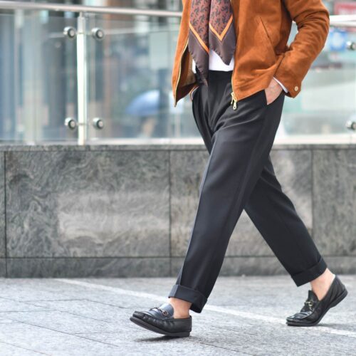 今までの着こなしではありますが、ここはやはりブラックのパンツをチョイス!!