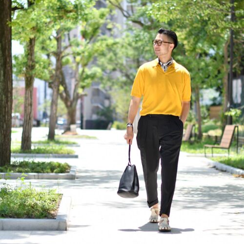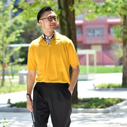 今回はモノトーンにイエローニットを差して