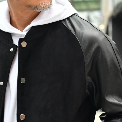CINQUANTA【チンクアンタ】スタジャン アワードブルゾン Q528 2011 1060 999 NERO ゴートスエード ナッパレザー ブラック