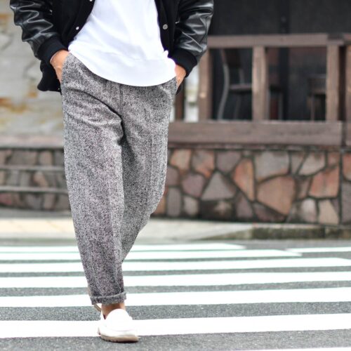 Cellar Door【セラードアー】ワンプリーツパンツ ALFRED BL 199 ウールポリエステル ヘリンボーン ブラックホワイト