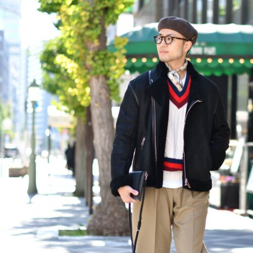 ブルゾンはCINQUANTA【チンクアンタ】のムートンライダース。
