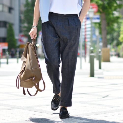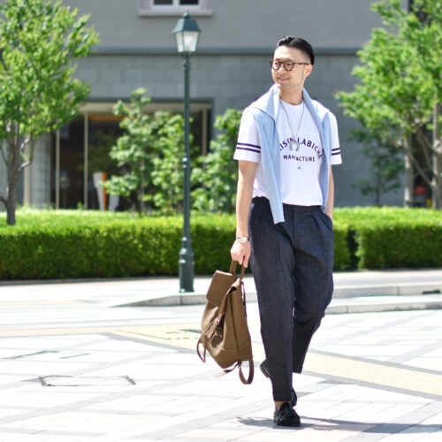 クラシックなパンツをベースにイマドキらしい緩やかさをプラス。