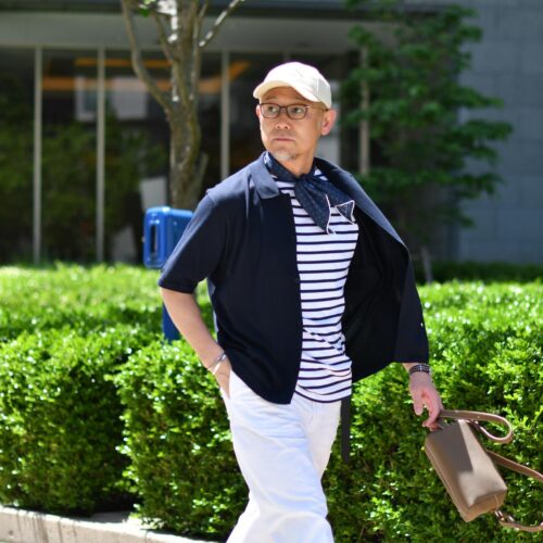 さて、本日はその半袖シャツカーディガンを使用した爽やかマリンスタイルです!!