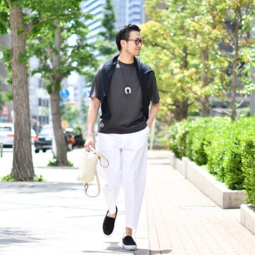 夏らしくホワイトパンツを合わせて完成ですね♪