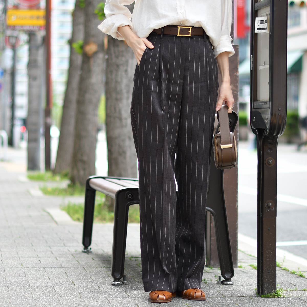 主役は、クラシックな佇まいが魅力のPT TORINOストライプワイドパンツ。