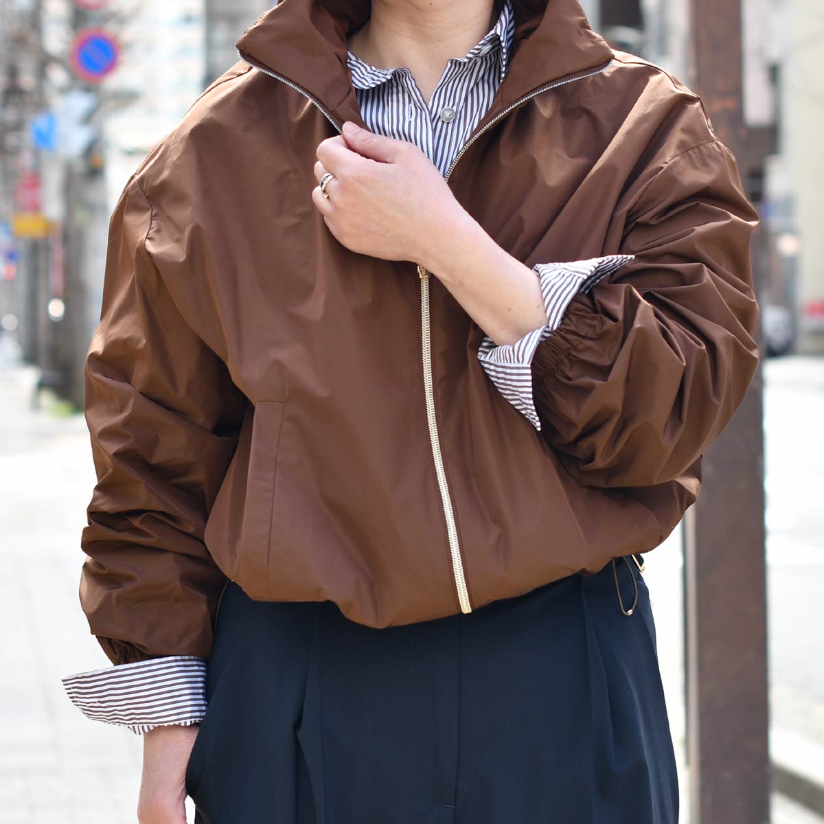 ほどよい光沢とハリ感が特徴のショート丈ブルゾン。