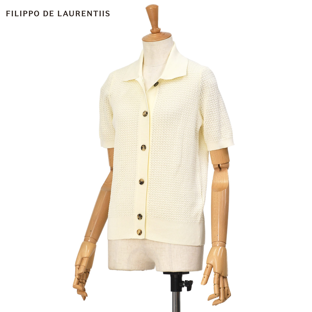 ◆FILIPPO DE LAURENTIIS 【フィリッポ デ ローレンティス】ポロニットカーディガン CA1MC CR14L GESSO コットン アイボリー