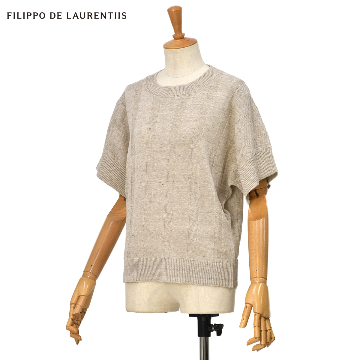 ◆FILIPPO DE LAURENTIIS 【フィリッポ デ ローレンティス】クルーネックニット GC1SM LC7C BEIGE リネン コットン ベージュ
