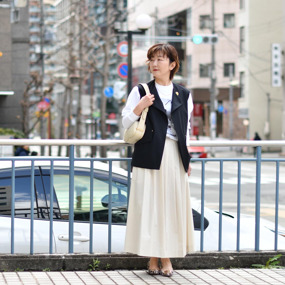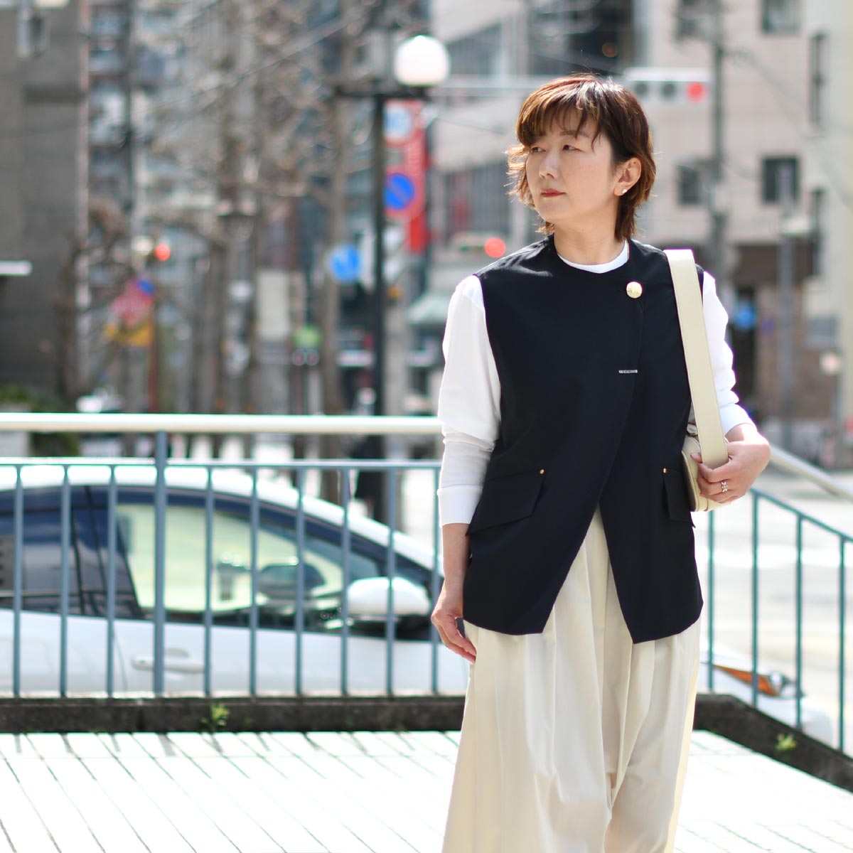 肩ひじ張らず、けれども女性らしさのあるスタイルに。
