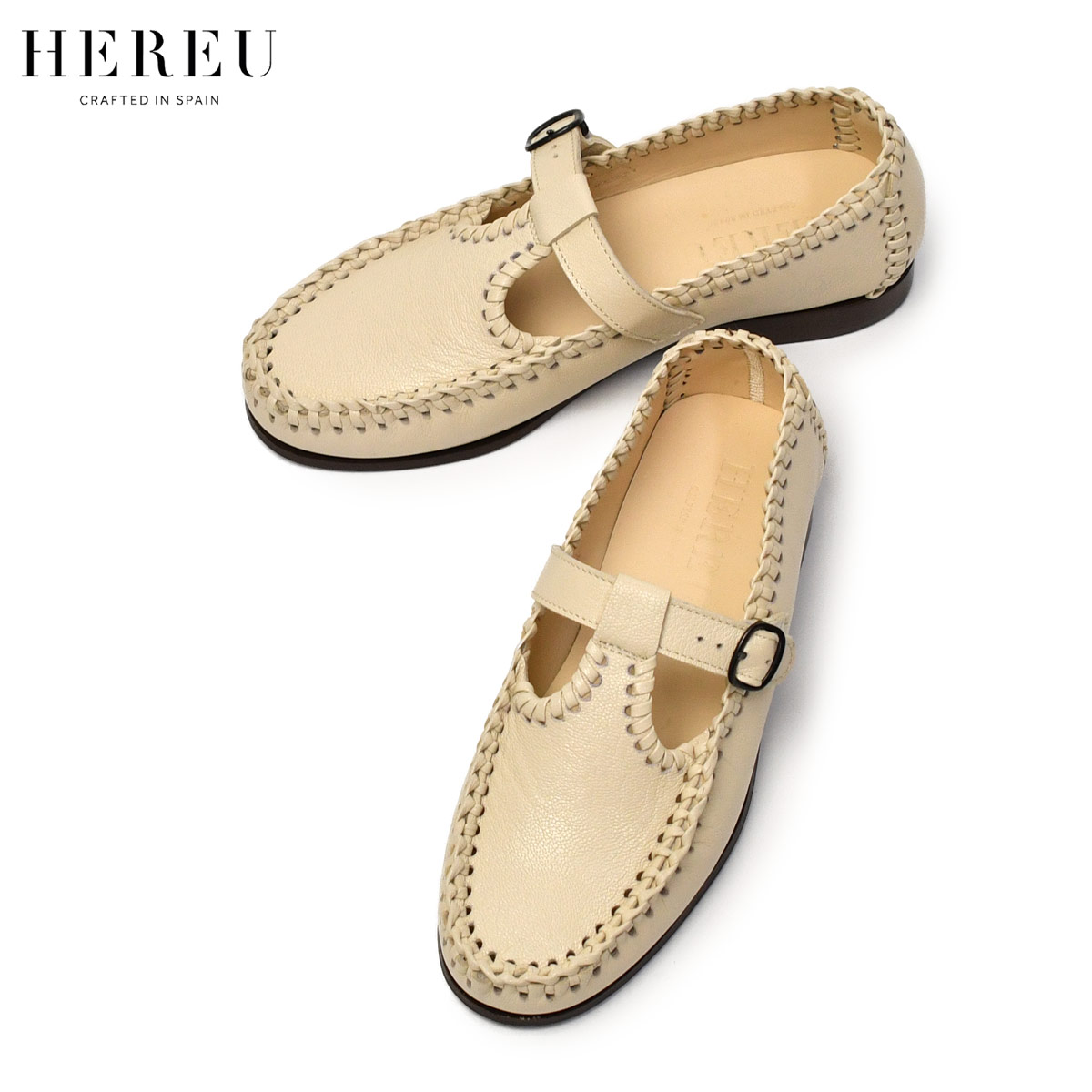◆HEREU【へリュー】Tバーローファー ALCOVER SUPPLE SHINY CREAM クリーム