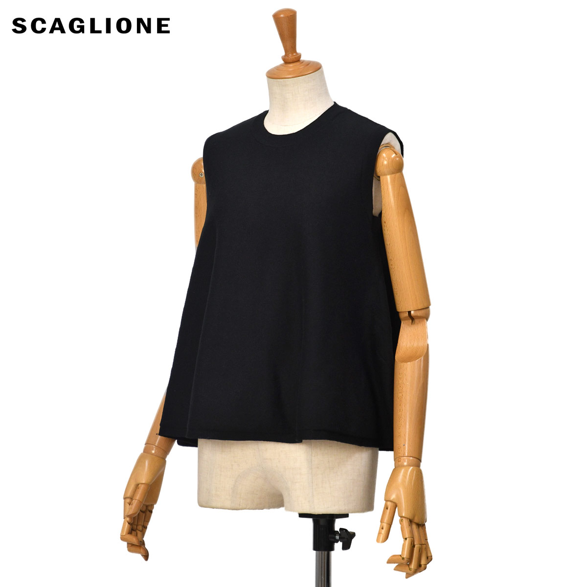 SCAGLIONE【スカリオーネ】 ノースリーブペプラムニット DSC061 001 BLACK コットン ブラック