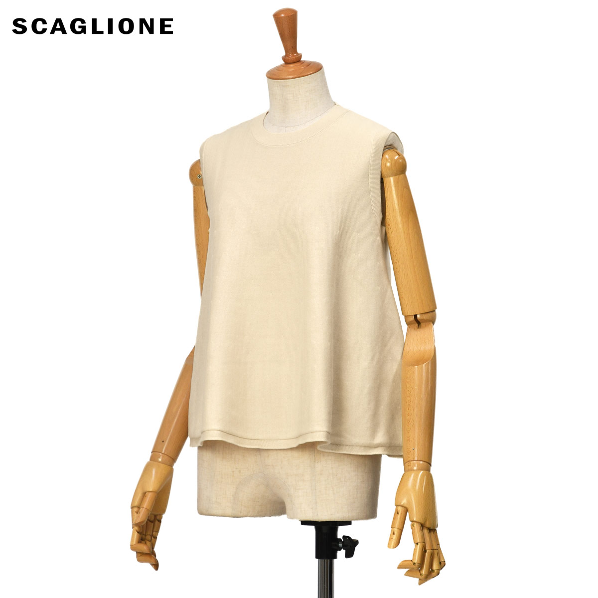 SCAGLIONE【スカリオーネ】 ノースリーブペプラムニット DSC061 109 VANILLA コットン バニラ