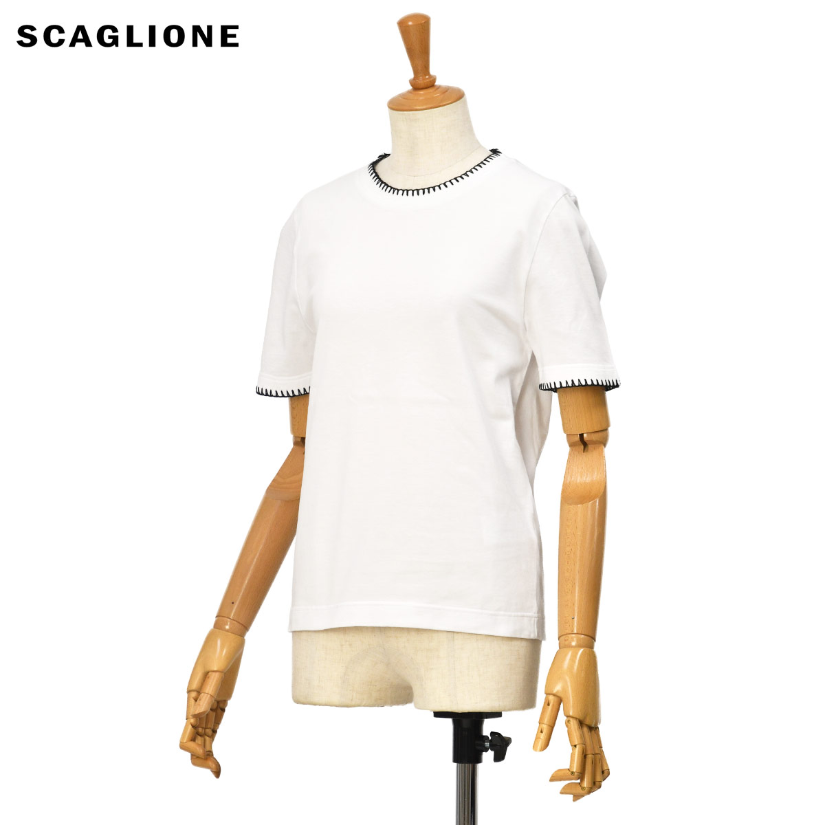 SCAGLIONE【スカリオーネ】 半袖カットソー DSJ152 702 MILK/BLACK コットン ミルク ブラック