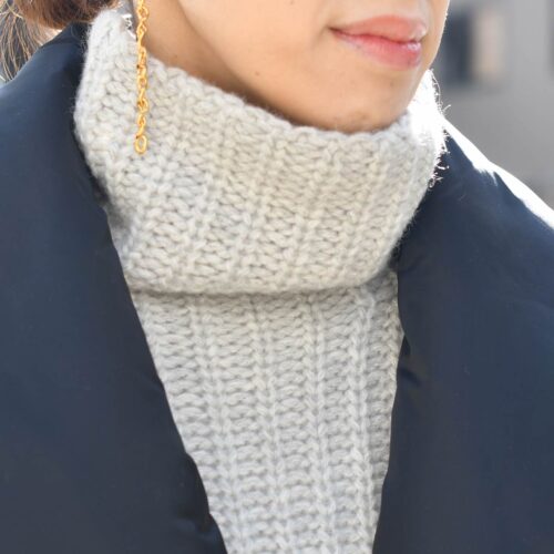 そして、ヒップを覆う長めの着丈のSCAGLIONEのニット。