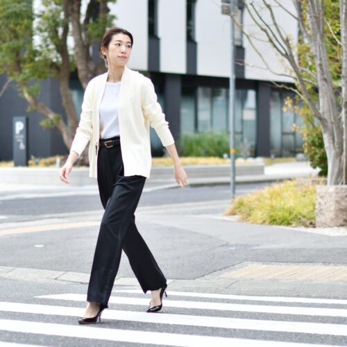 本日はモノトーンでお仕事スタイルを意識したコーディネート。