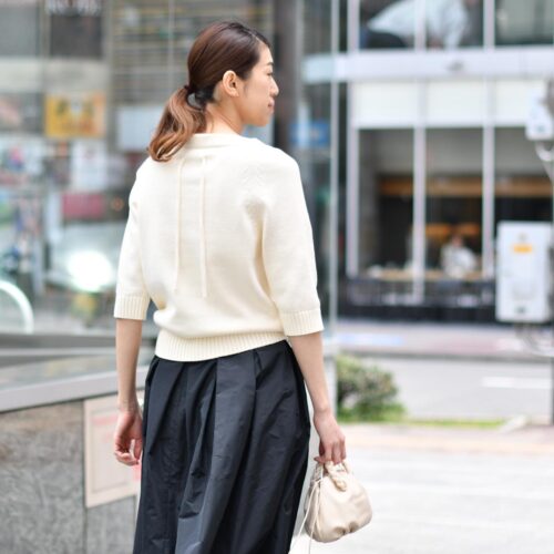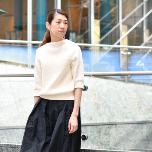 YURI PARK【ユリ・パーク】ミドルゲージ七分袖ニット JUNE-OG A005-6935 ECRU コットン エクリュ
