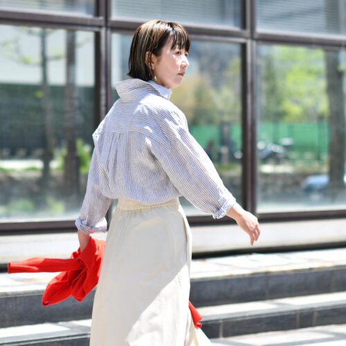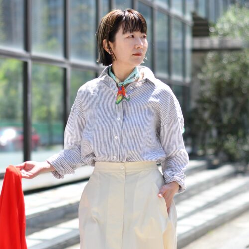 紫外線対策や冷房よけにも襟付きシャツは活躍してくれますよね。