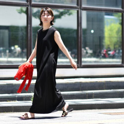 three dots【スリードッツ】ノースリーブカットソーワンピース HB5001Y 019 BLACK コットン ブラック