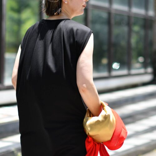 ウエストがキュッと縛られ、上半身がすっきりコンパクトにまとまります。