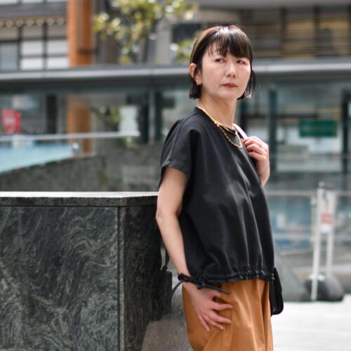 SCAGLIONE【スカリオーネ】ドローストリング半袖カットソー DMJ163 001 BLACK コットン ブラック