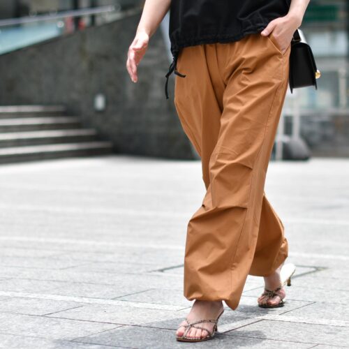 ミリタリーが出自のパラシュートパンツですが、上品カラーをお選びいただきますと