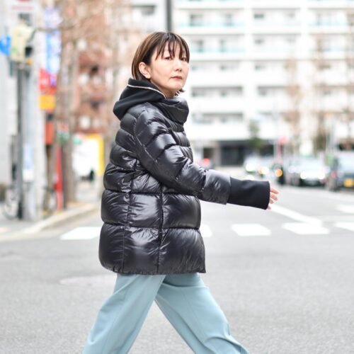 特徴的なのは、裾にいくにしたがってダウン幅が変化する立体的なシルエット。