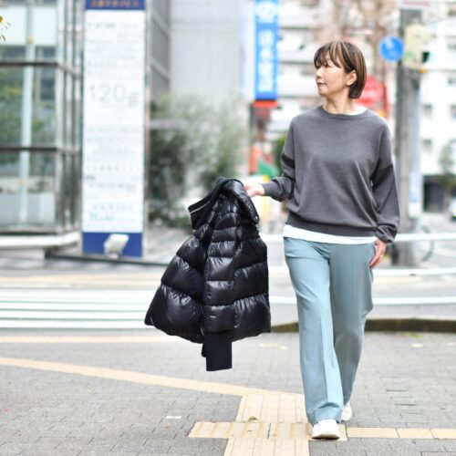 こだわり詰まったダウンのインナーにはSCAGLIONEのドルマンスリーブニットを。