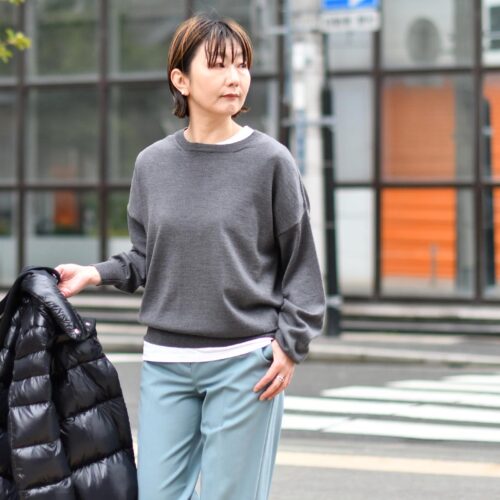 リラックスシルエットのハイゲージニットは春先まで活躍してくれますよ。