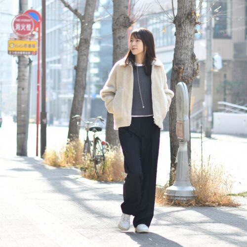 クリームがかったお色目のムートンが適度な可愛らしさのあるデザイン。