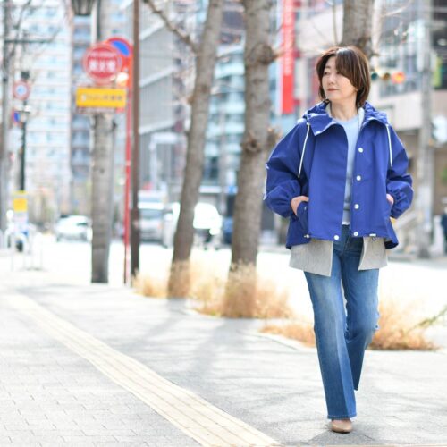 ショートコートを羽織ったレイヤードスタイルのご紹介です。