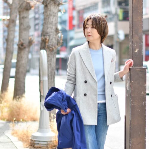 コートなしだとクールな雰囲気のジャケットスタイルですが、